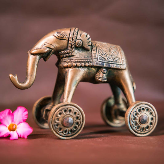 Handcrafted Brass Elephant On Wheels - Traditional Indian Decorative Figurine