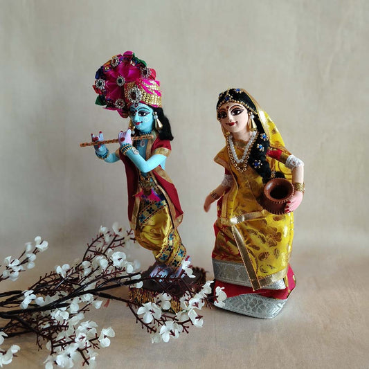 Handcrafted Radha Krishna Dancing Doll Set - Divine Couple In Traditional Attire