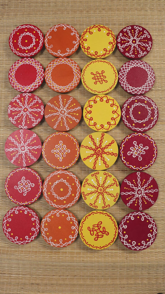 Round Kolammanai Orange 4" Set Of 2 Handcrafted Traditional Kolam Design For Spiritual Decor