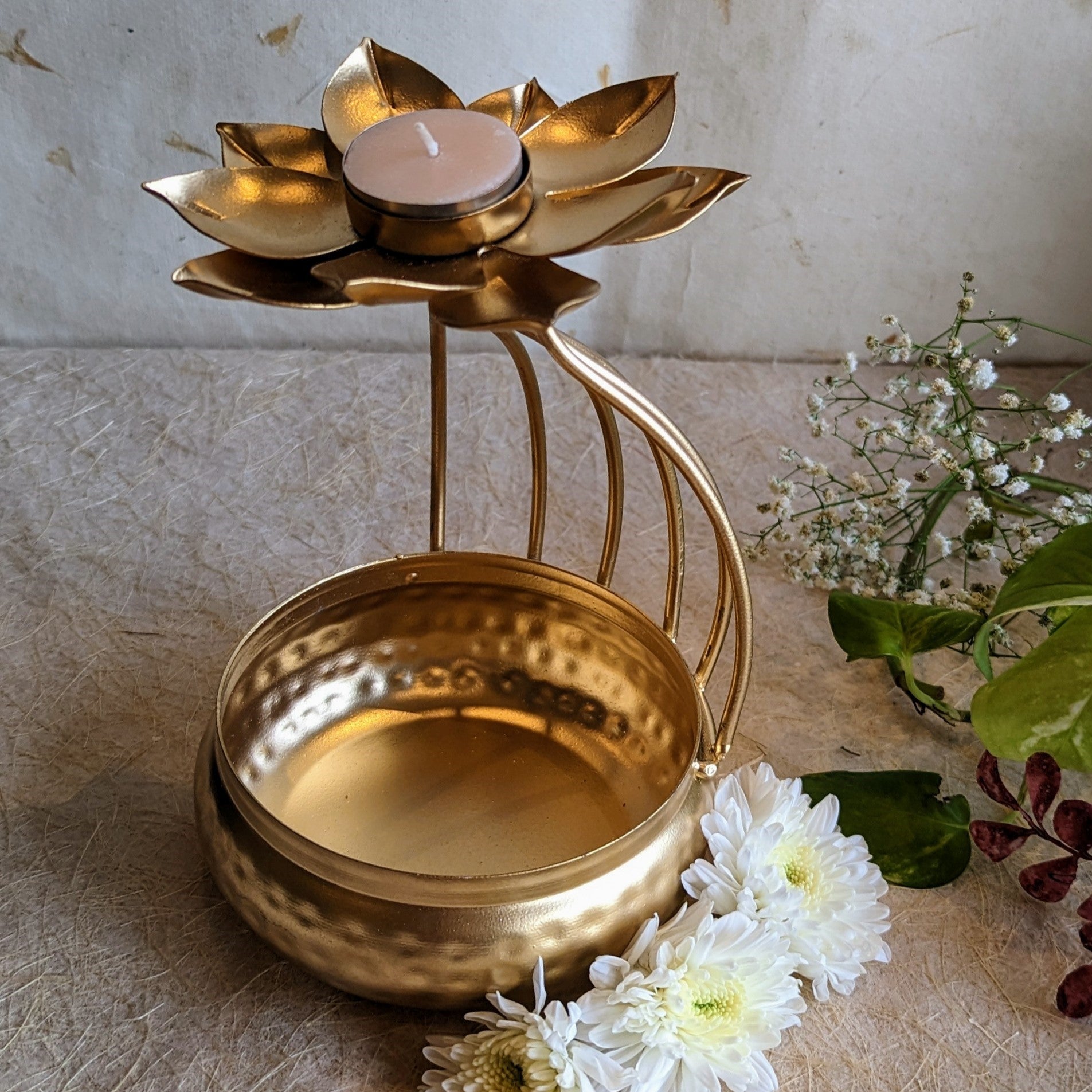 Bowl Lotus Tealight Holder Golden Elegance For Ambient Lighting
