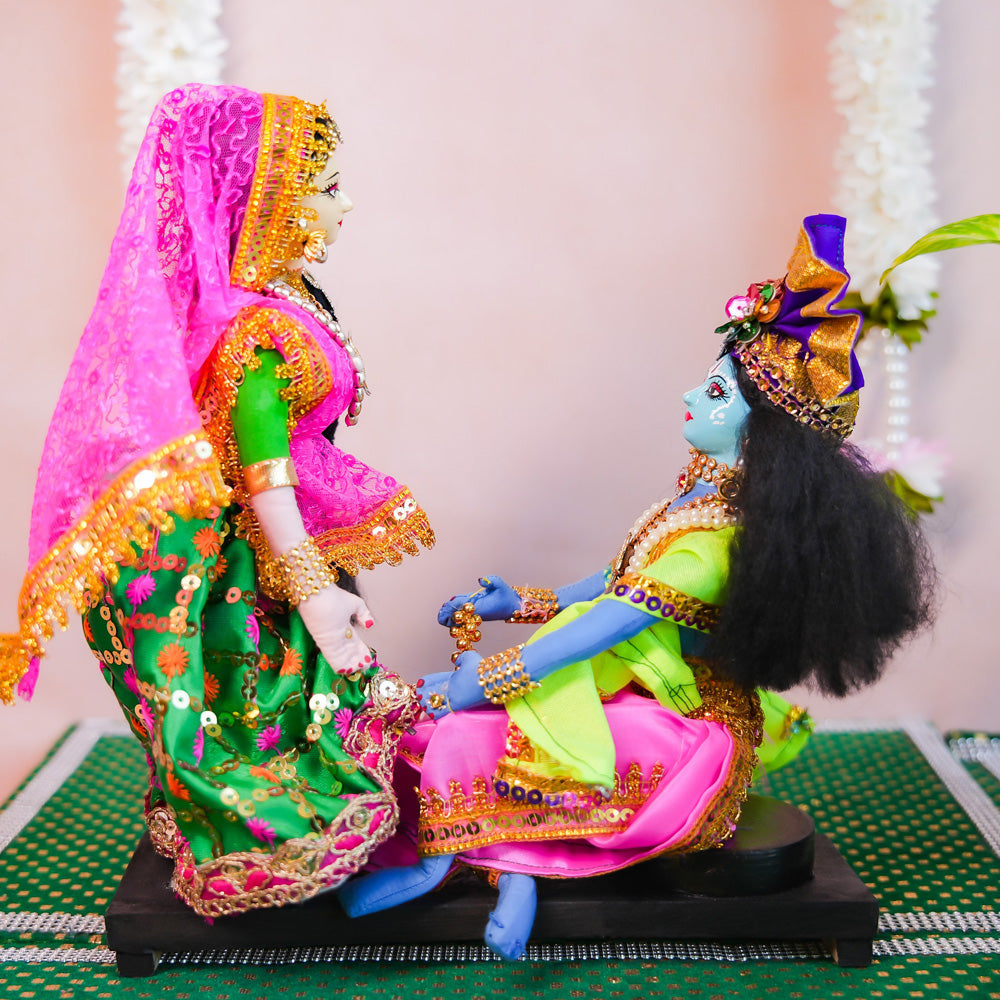 Exquisite Radha Krishna Doll Set - Krishna Putting Anklet On Radha