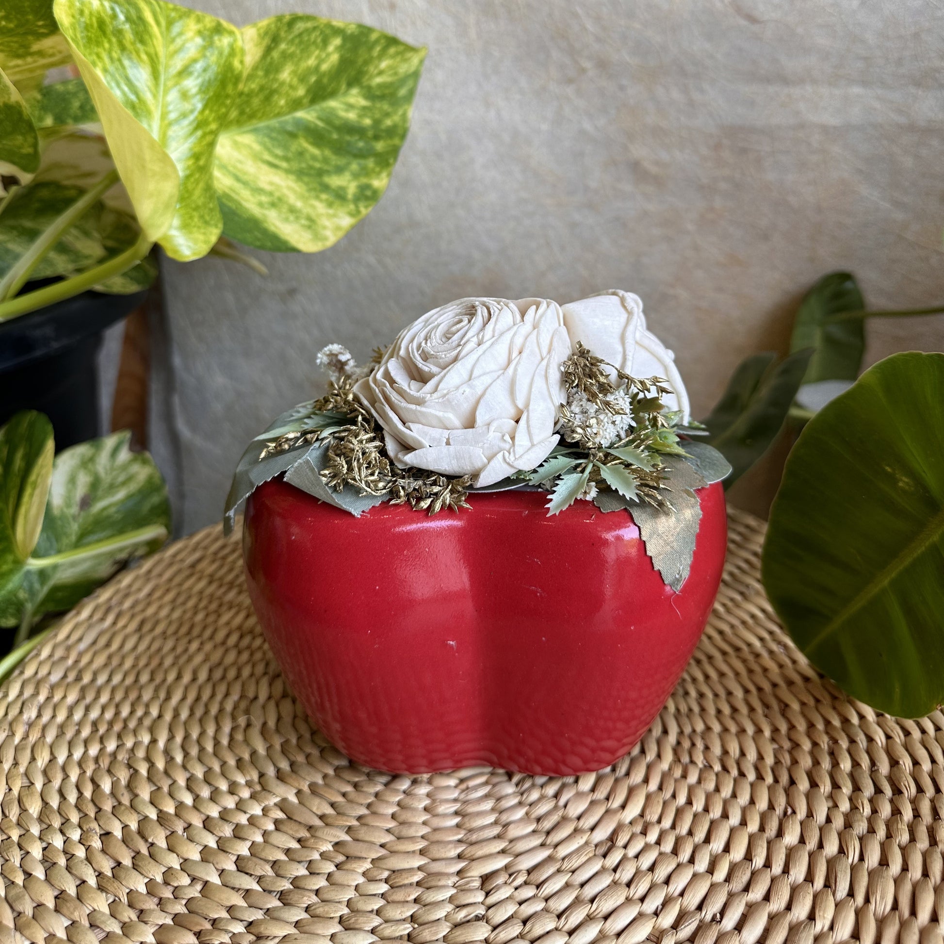 • Description: Gorgeous flower arrangement of pastel-hued blooms handcrafted from shola pith or Indian cork, which is the dried stem of the shola plant. This stunning bouquet is so realistic it is hard to tell they aren't real flowers. Tastefully put together, this arrangement adds a touch of elegance to any table it graces.