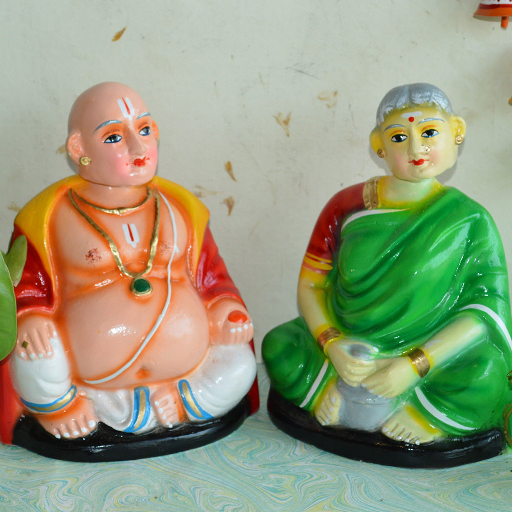 Navaratri Handcrafted Chettiyar And Chettiachi Set-Naamam Traditional Indian Golu Doll