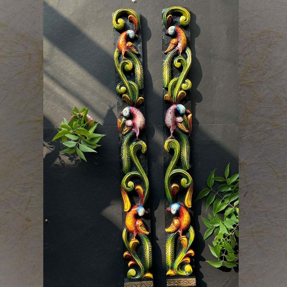 - Description: Elegant vertical wall panel set with stylised peacocks and creepers. These can be used in living areas for a traditional touch or in balconies and verandas to complement your plant arrangements.