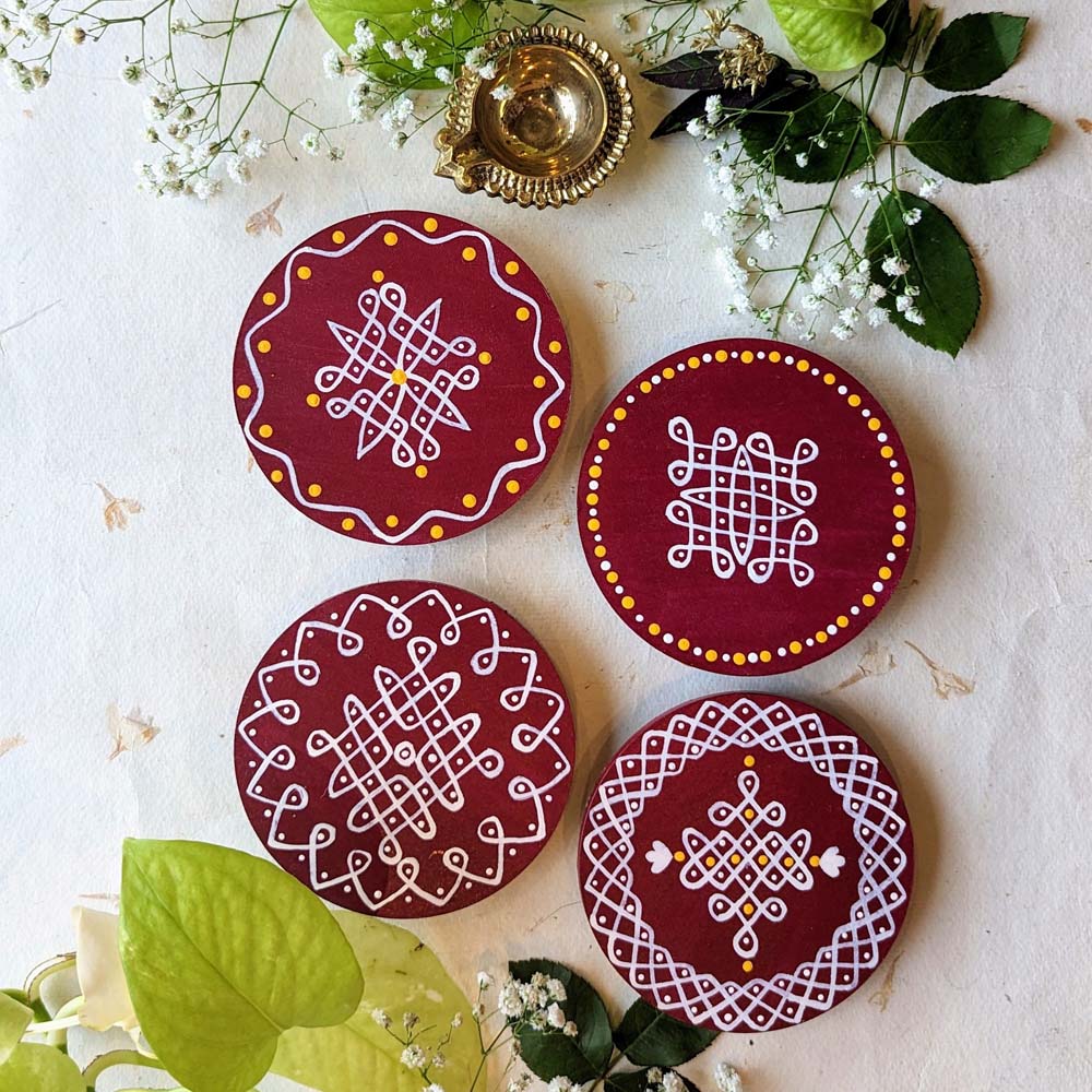 Round Border Design 4"Assorted Designs (Set Of 2) Maroon
