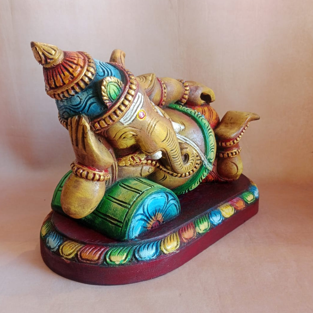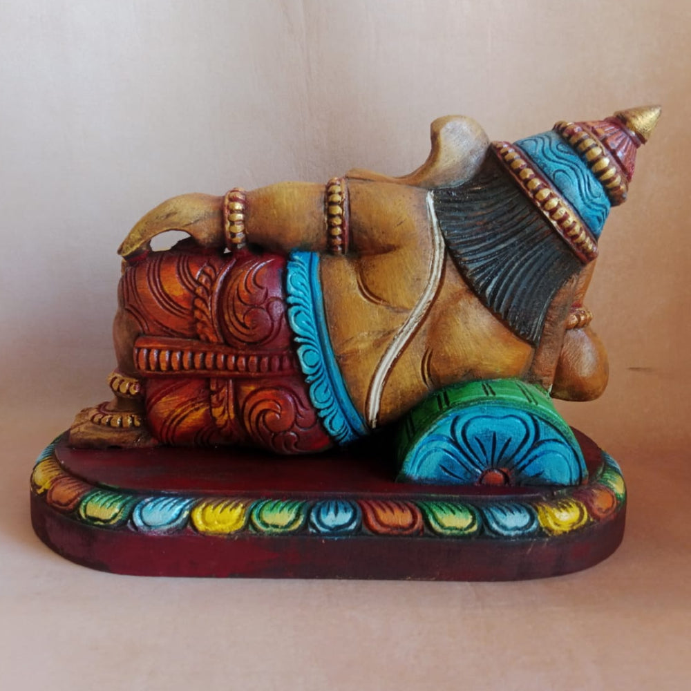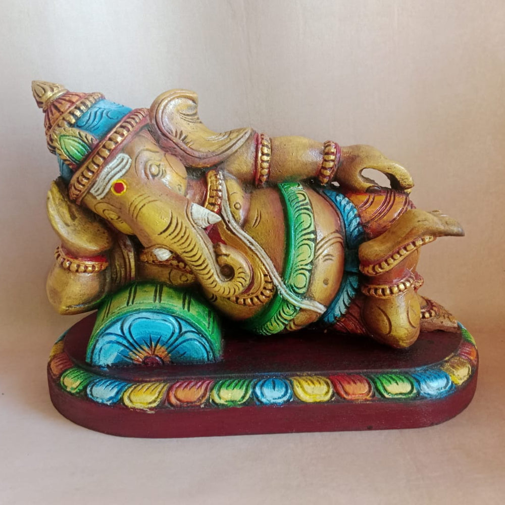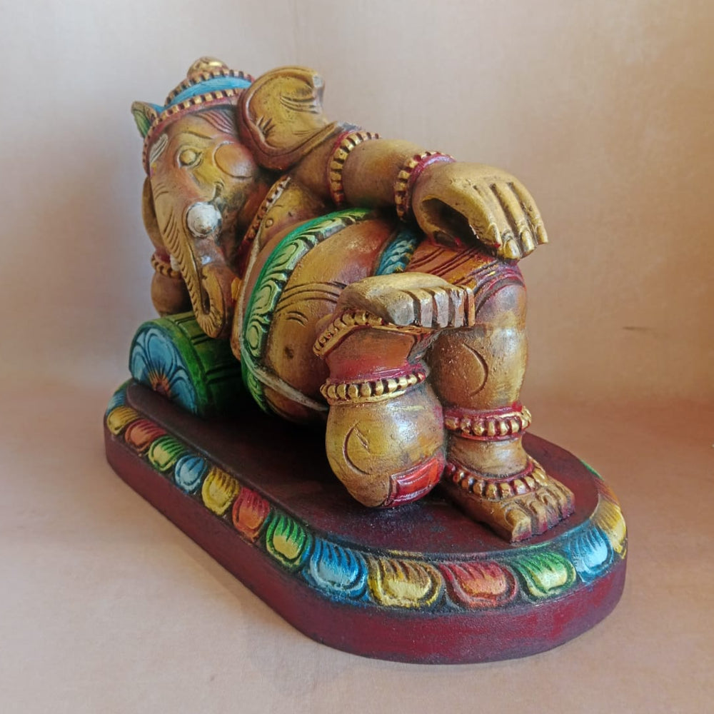 Sleeping Lord Ganesha Statue Handcrafted Wooden