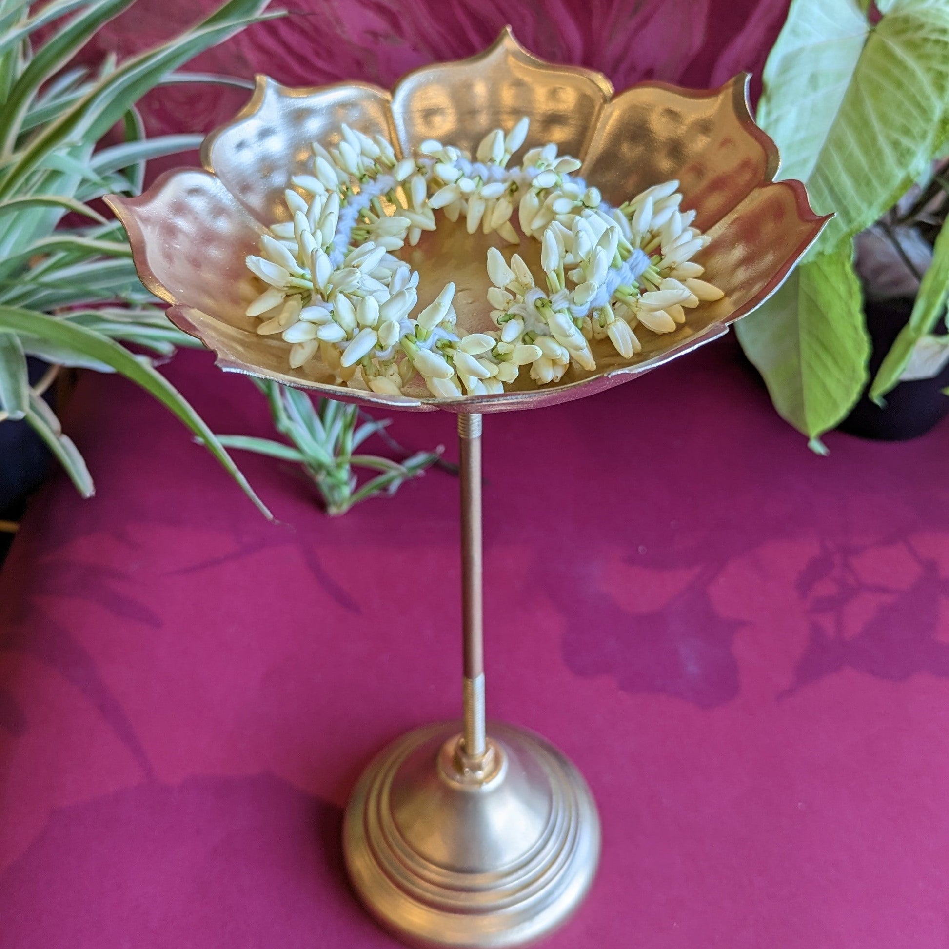 Sunflower Brass Urli With Stand Handcrafted Medium Floral Decor Bowl For Pooja